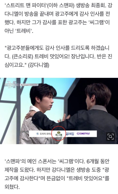 야 관계 1도 없을 트레비 관계자도 얼굴 붉혔겠다. ooo 맛있어요. 장난입니다ㅋ 반은 진심이고요ㅋ 이게 어디 스폰서에게 감사하는 태도냐 조롱하는거지.