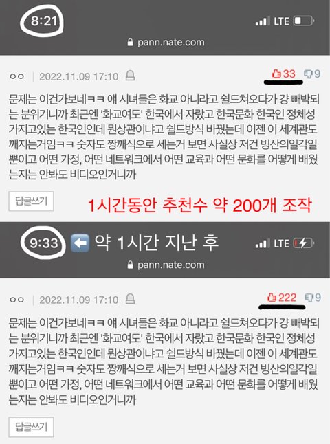 다 조작질로 만들어진 여론들이니까 정상인 판녀들은 장원영 까글 볼때마다 아 얘네 또 매크로 주작기 돌려서 조작질했구나 불쌍하다~ 하고 넘어가주면 됨 ㅇㅇ