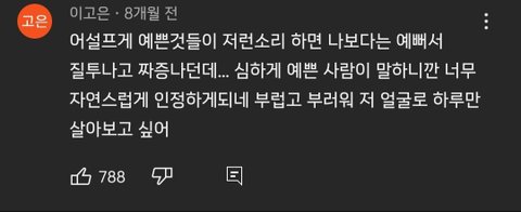 어설프게 예쁜 ㅇㅈㄹ 싸고있네 어설프게 예쁜 건 뭔 개잡소리임 ㄹㅇ 예쁜 거 맞는데 지가 인정하기 싫어서 꾸역꾸역 어.설.프.게 ㅇㅈㄹ 갖다 붙이는 꼬라지 ㅉㅉ 자격지심 지리는 ㅈ병1신 같당