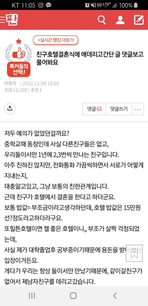 [원본지킴이]친구호텔결혼식에 5만원내고 남친데리고가서 뷔페먹음