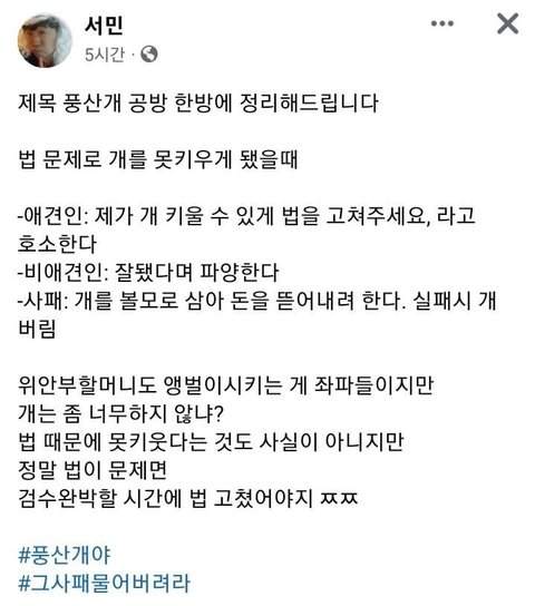 문재인은 풍산개를 데리고 가서 그냥 마당에 묶어놓기만하고 관리도 안하면서 250만원을 요구하고 있다. 전직대통령의 집에 있다는 개의 털상태와 눈밑의 눈꼽을 봐라 시골 할머니집에 방치한 10년넘은 개수준임.4~5년된 개가 저리 팍 늙어보이다니. 사진찍을때만 가까이 하는개수준임 .