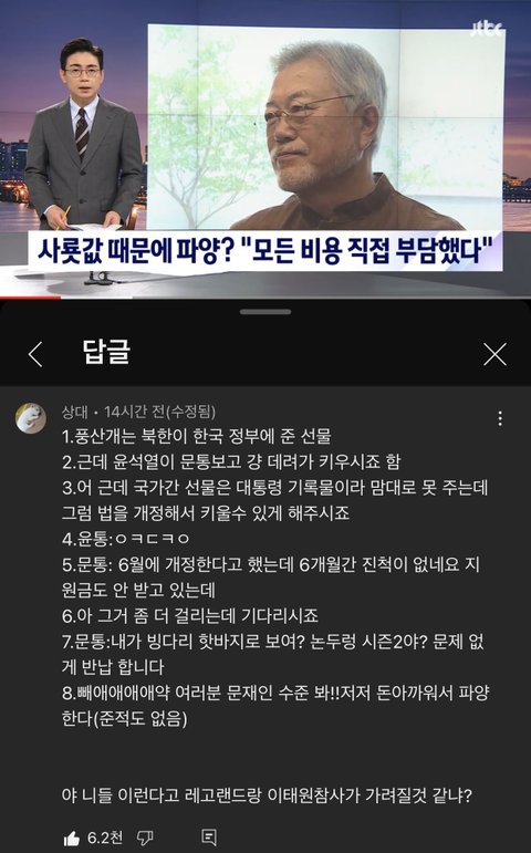 북한이 선물도 준 국가 소유 풍산개들 대통령 임기 끝난 문재인이 개는 국가 기록물에서 제외하는 제도 만들어주겠다는 윤석열 약속 믿고 위탁해서 키우고 있었는데 윤석열은 약속을 6개월 넘게 방치. 이대로면 문재인은 윤석열한테 속아서 구속 당할 위기 100프로. 법 개정되기 전에는 국가 기록물인 개 본인이 못 데리고 있는다고 했더니 국힘쪽에서 250만원 때문에 개 파양한 전대통령으로 만듦. 문재인 대통령은 250만원 받은 적도 없음..ㅋ