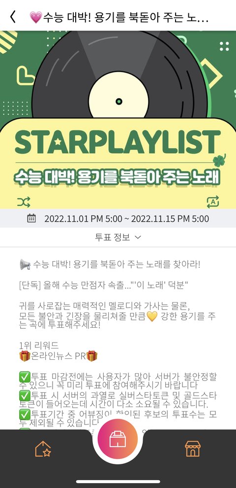 스타플레이에서 하는 수능 응원곡 투표에 우리 노래잇다!