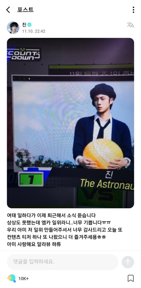 10년차 아이돌이 1위 감사 인사라니