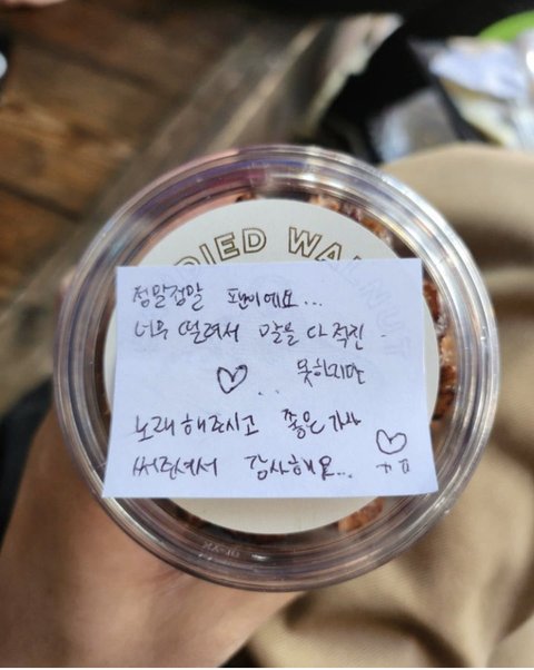 근데 그 팬이 아는척하면 남준이가 부담스러울까봐 음료수? 같은거 조심스럽게 건네줬나봐 아는척 하면 사람들 몰리고 곤란해질까봐 저렇게 해준것 같은데 그 팬 배려심에 약간 내 마음까지 따수워짐….