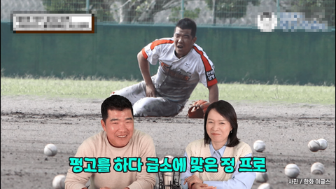 펑고하다 급소에 맞아서 떼굴떼굴 굴렀는데