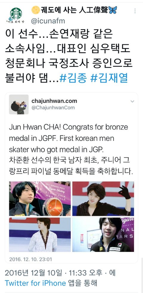 김연아 전 소속사에 대한 복수에 눈이 멀어 차준환마저 악의적으로 정치적인 프레임을 씌우려는 작업을 계속 해왔다.
