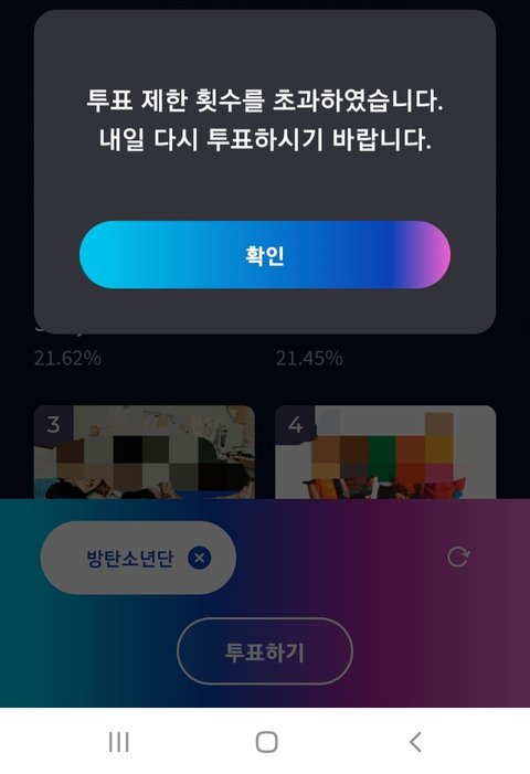 오늘은 투표 1계정 하고 나니까 제한 걸렸어