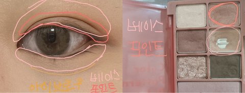 브라운계열 쓰는 애들은 그냥 쉐딩만 쓰거나 아님 저런 살구색 느낌 같은 섀도우 좀 섞어주면 괜찮을 거야