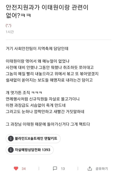 묻혀진기사)이태원참사로 또 한집의 가장이 죽었습니다.