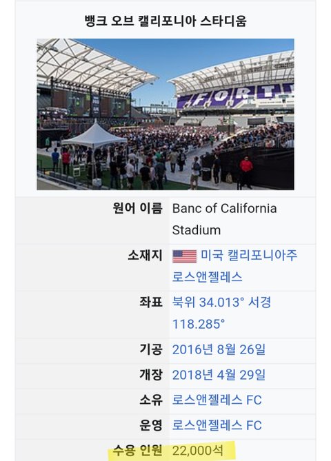 실체는 하나같이 다들 2만 2천석 아레나 규모 뱅크 오브 캘리포니아 공연장임 ㅇㅇ