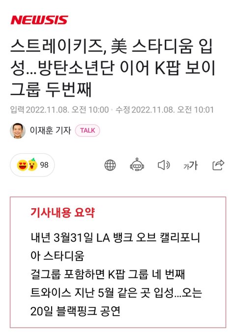 요즘 케이팝 아이돌들 "미국 스타디움 입성" 이러면서