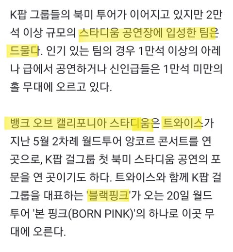 "미국 스타디움 입성!" 이런 기사에 오? 하고 들어가면 죄다 이 공연장임;;