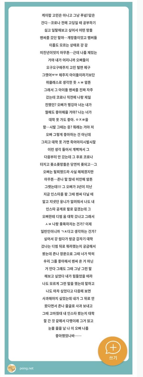 망돌 팬싸썰은 이게 투톱인듯
