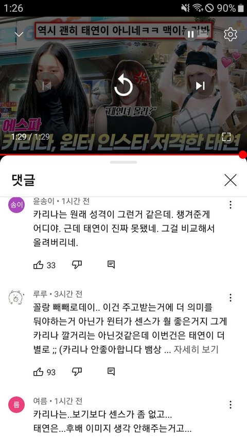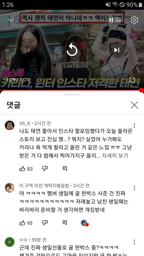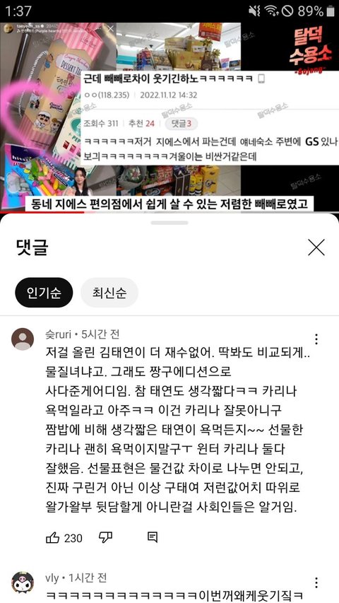 에스파가 빼빼로준거 올렷다가 욕먹는태연