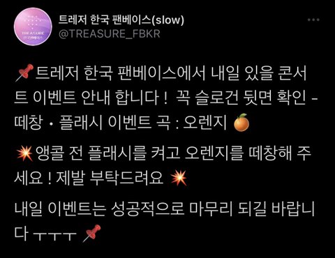 입장할 때 받는 슬로건 뒷면에 적힌 오렌지 가사 불러주자!!