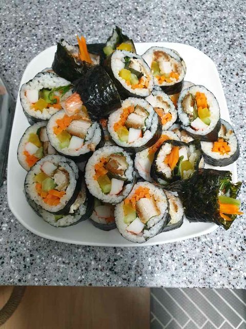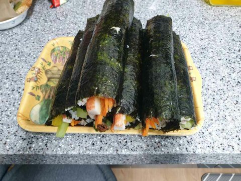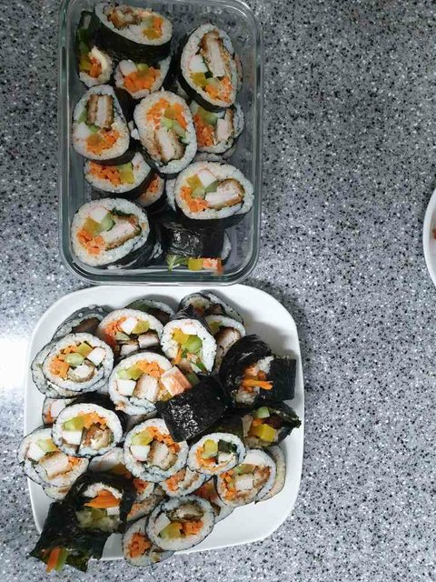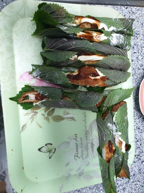 돈까스를 잘라서 소스 마요네즈 넣고 깻잎에 말았다가 넣으니 깔끔하고 편해요.