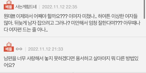 그래서 그런지 눈이 찌푸려질 정도의 댓글들이 많이 올라오더라고요