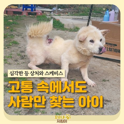 다쳐서 아파하는데도 사람만 좋아하는 유기견 ‘트니’ 를 보는데 마음이 너무 아픕니다