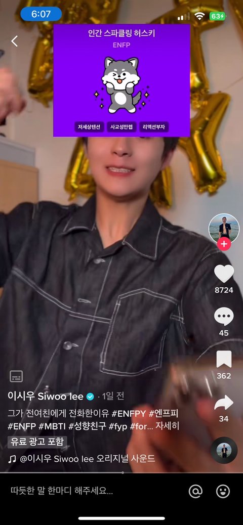 이 틱톡커도 실제로 커플이었다 헤어졌는데 ENFP만 쓸 수 있는 앱 광고에 ENFP 전여친으로 출연하네요;;;
