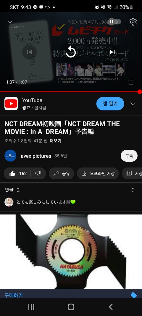 유툽 avex에 드림 예고편...