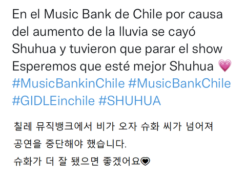 역대급 폭우로 공연 도중 취소된 '뮤직뱅크 인 칠레'