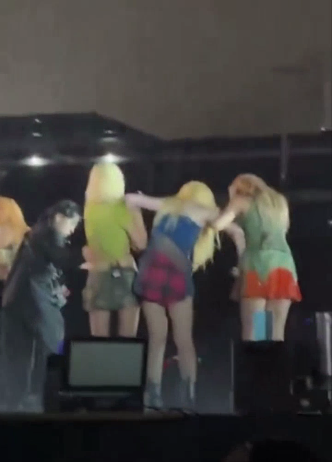 무대 미끌미끌하다보니 슈화가 넘어지는 사고까지 발생했던거 ㄷㄷ