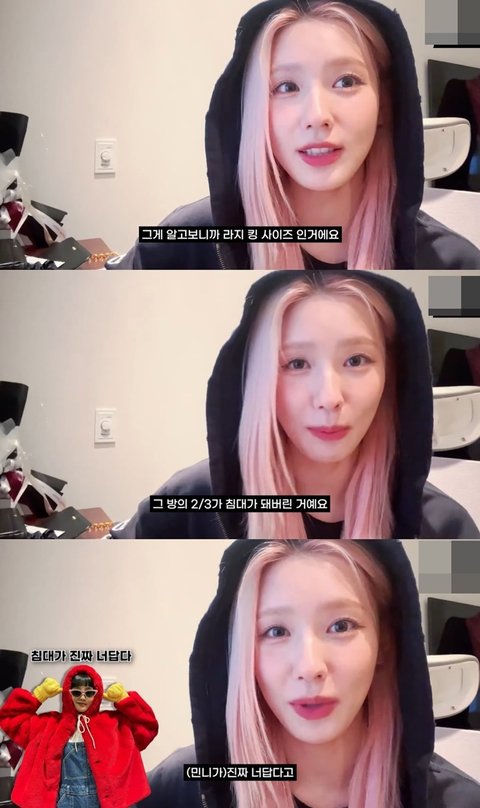 아이들 미연이가 숙소에서 혼자 쓰고 있다는 침대 사이즈.jpg