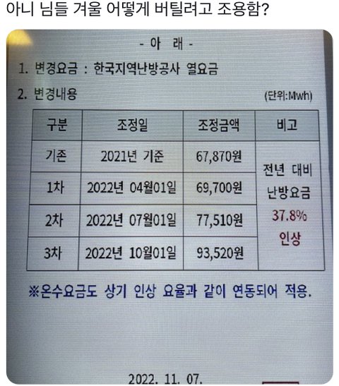 그래서 난방비 얼마나 나오세요? ㅠ