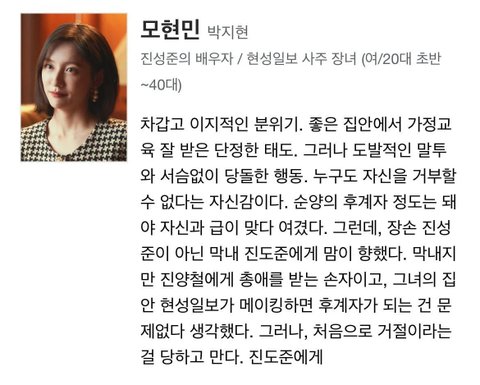 드라마판에서는 현성일보 딸 모현민이라는 이름으로 바뀌는것과 동시에
