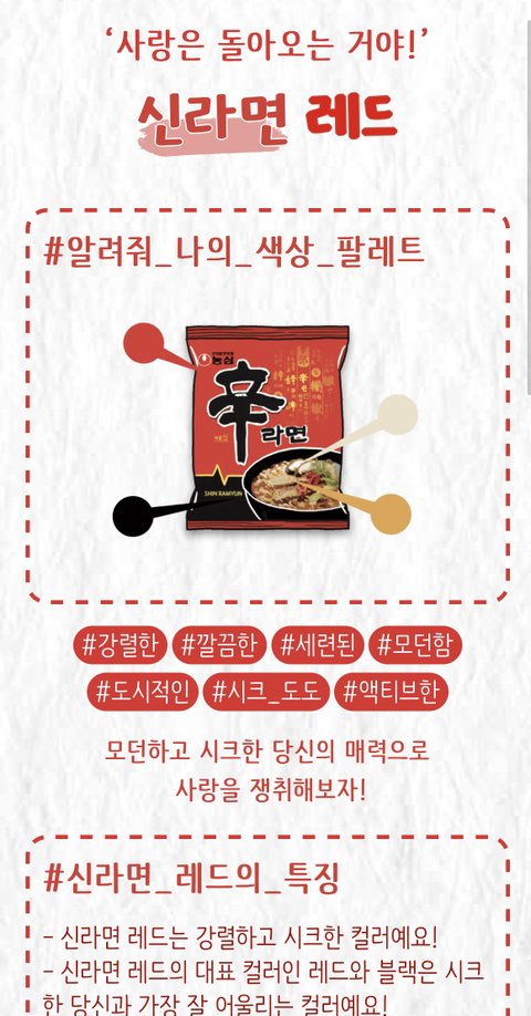 라면이름에서 따온 ‘세상에 단 하나뿐인 색’을 추천해 드려요!!!