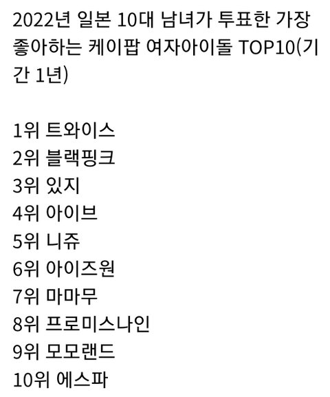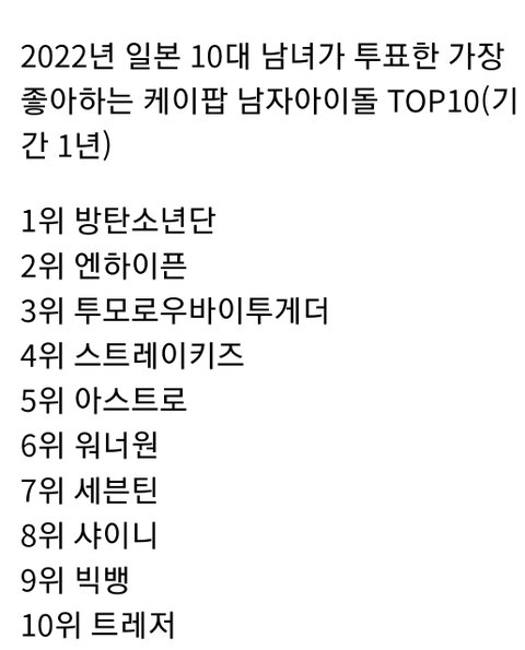 일본 10대순위에서 샤이니, 에스파만 진입. 샤이니가 옛날가수인거 고려하면 사실상 에스파만 3,4세대중 유일