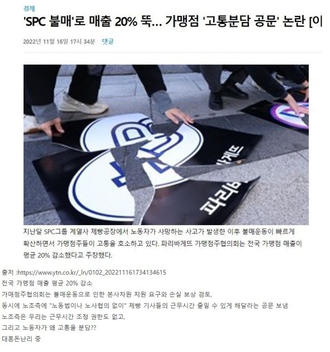 집앞 빠리바게뜨 애용했는데 이젠 안사먹는다. 그걸 먹을수가 없다. 근로자가 죽었는데 흰천 덮어놓고 옆에서 일하게 했다니 , 근로자는 인간도 아니고 슬퍼할 자격도 없고,, 일하다가 디져도 그냥 어서빨리 일이나해!!!!!!! 이런거야?????????,, 근로자는 인간도 아니냐??? 그런 피묻은 빵을 절대 먹을수 없다. 나도 20대 자식이 있다. 공장에서 사람대접도 못받고 20대에 죽은 어린애가 불쌍하다