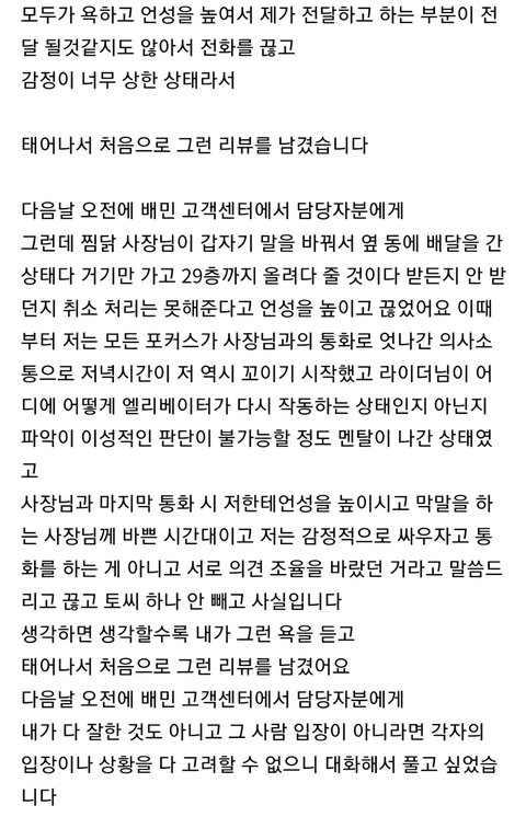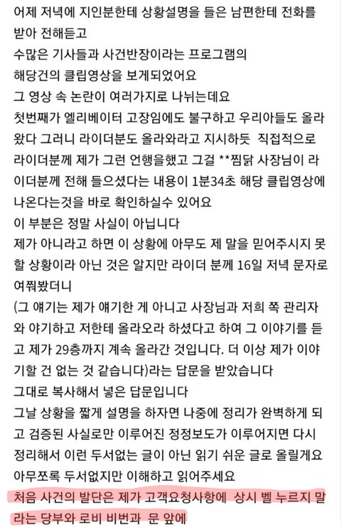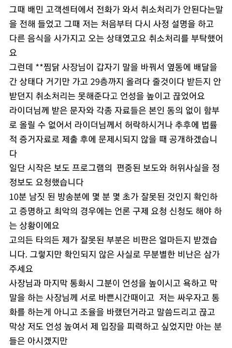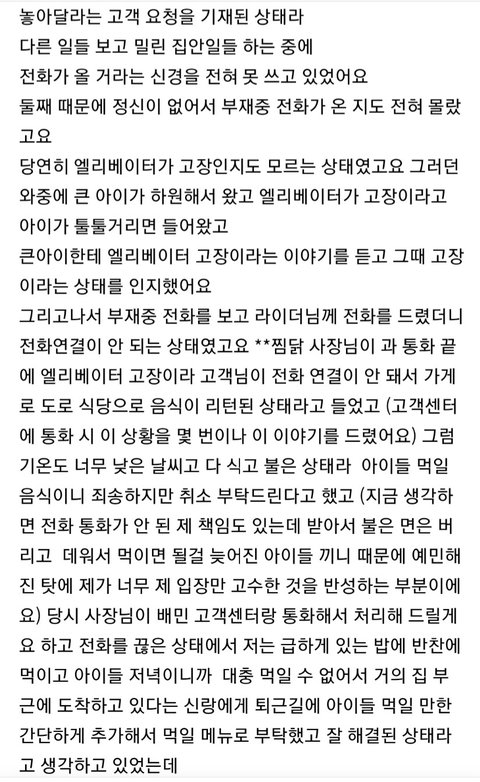 본방 본 사람으로서 이 아줌마 진상 맞음. 가게 주인이 너무 억울해서 방송에 직접 제보한 거임. 본인 말대로 사정설명하고 주문취소 요청을 한 게 다면 우리 아들도 왔다 소리는 대체 왜 나왔겠음? 가게 주인이 그 집에 아들이 있는지 없는지 알 게 뭐냐고. 애초에 음식 시켜놓고 엘리베이터 고장이니 주문취소 한다는 자체가 진상 마인드인 거임. 댓글 보면 본인도 그건 아는 것 같은데 이미 다 알려져서 그건 그냥 잘못했다 수그리고 다른 건 일단 잡아떼는 듯.