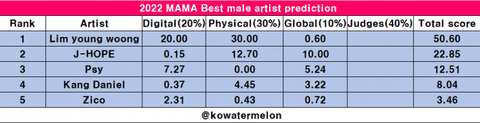 남자솔로랑 보컬 퍼포먼스 2개부문 후보고 남자솔로는 예측 1위임