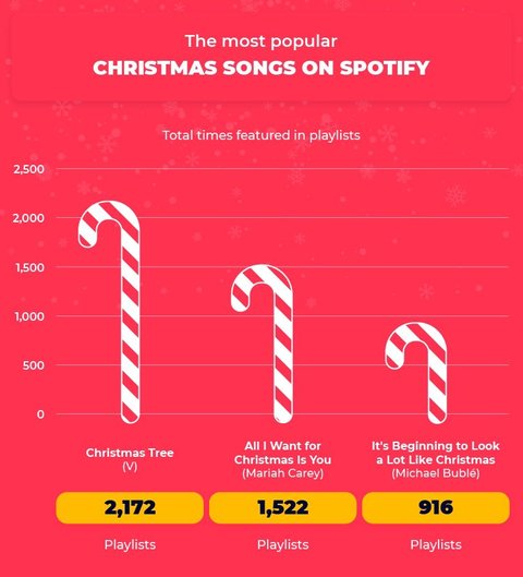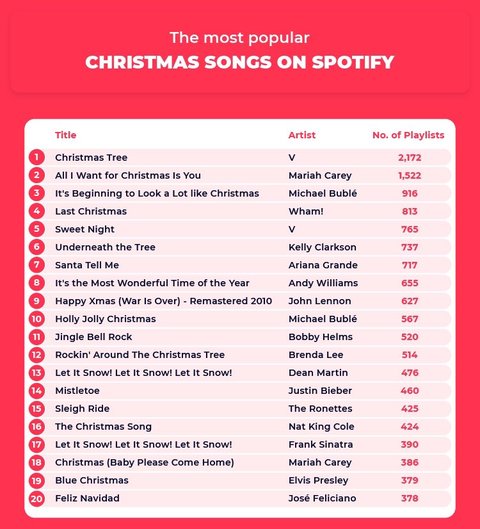 스포티파이 순위에서 가장 인기 있는 크리스마스송은 Christmas Tree by V