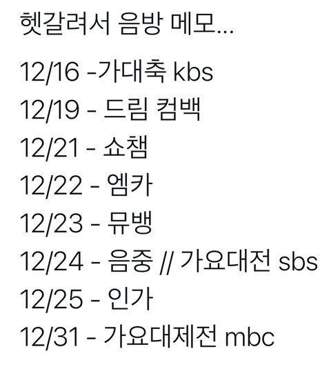 가대축에서 선공개하려는거면 너무행복한데? 그리고 밑에 음방들 쭉돌고 연말무대 돌면 !!!