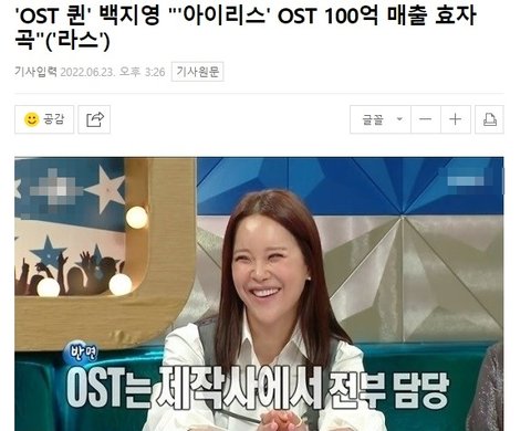 백지영은 ㄹㅇ OST 퀸이지