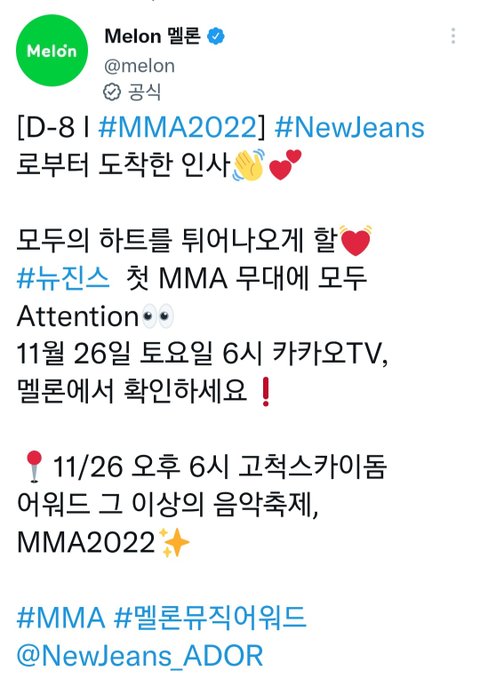 MMA 2022 D-8 뉴진스로부터 도착한 인사