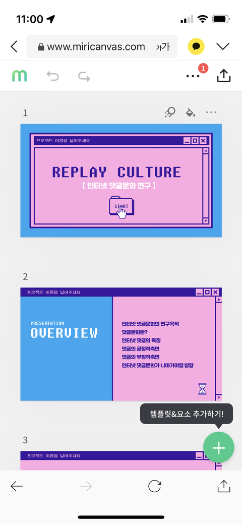 글씨 크기도 통일성 없이 제각각이라 수정했음 좋겠는데 그런 말 들으면 안 좋아하는 거 같아 말하지 않았는데 제가 색상 변경 요청하고 템플릿 아쉽다고 얘기한 부분이 곤조가 상한건지 반응도 뚱하더라고요.