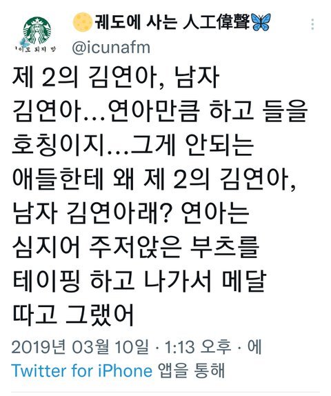 김연아 전 소속사에 몸 담았다는 이유로 13살 차준환을 집단으로 괴롭혔다. 2017년 기사엔 악플로 인해 소속사를 떠난다고 밝혔다(김연아 극성팬들 때문에)