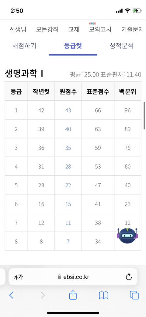 작년컷이라고 써져있는게 맞아? 아님 원점수?