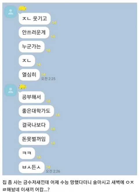수능 망치고 반톡에 테러한 금수저