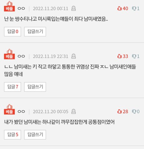 베댓 의견 다 다른데, 그리고 남자애 미쳤으니깐 남미새지 관상이 이래서 남미새다~ 이건 좀 아닌듯