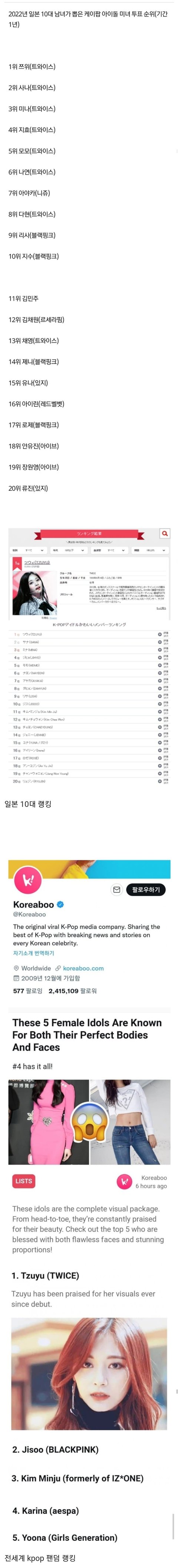 오늘 뜬 해외에서 뽑은 걸그룹 비주얼 랭킹.RANK