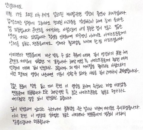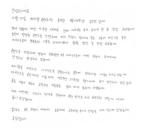 ++) 오늘 사태파악 다시 하고 올린 자필사과문