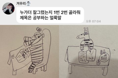 이거 보고 귀여워서 죽을뻔ㅋㅋㅋㅋ..둘다 그림 대결하는거 너무 귀여웠음ㅋㅋㅋㅋ
