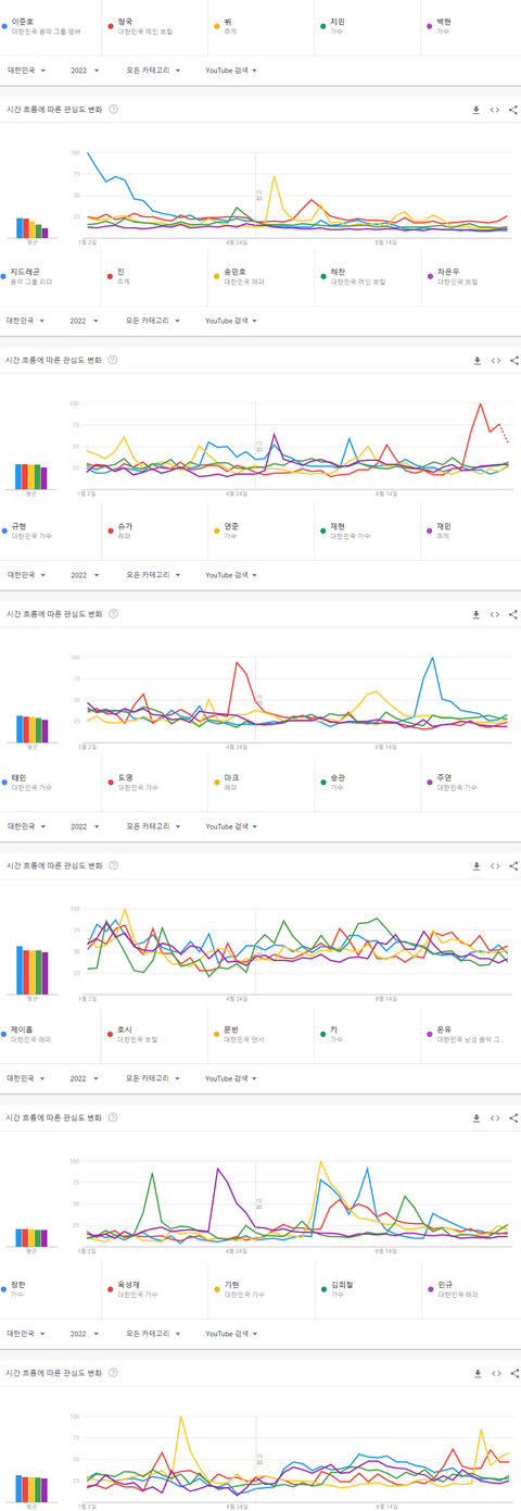 2022년 현재까지 한국 유튜브에서 가장 많이 검색된 케이팝 남자아이돌멤버 순위
