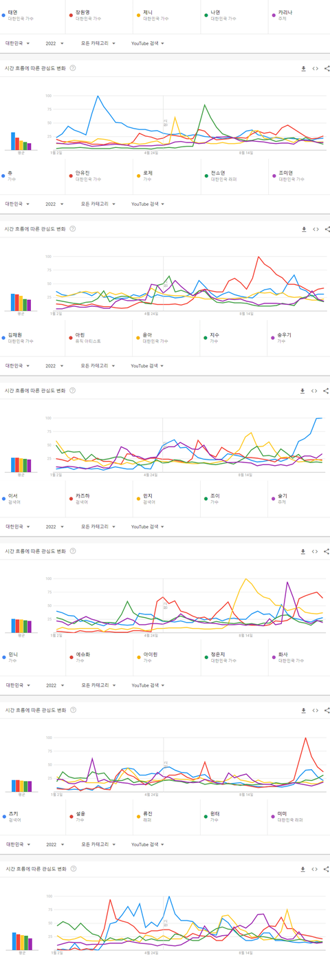 2022년 현재까지 한국 유튜브에서 가장 많이 검색된 케이팝 여자아이돌멤버 순위