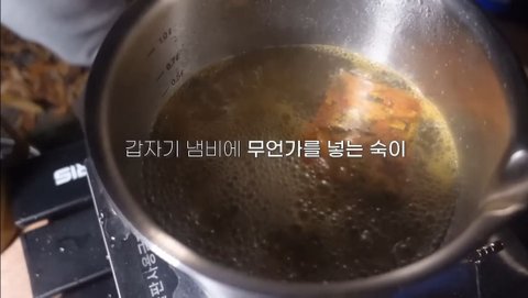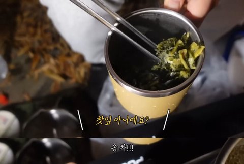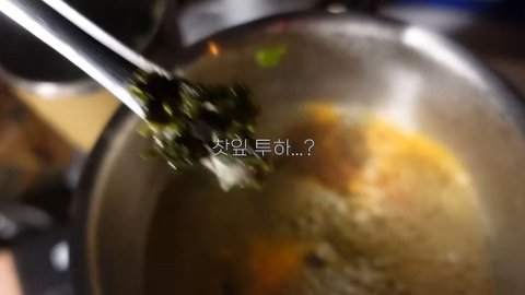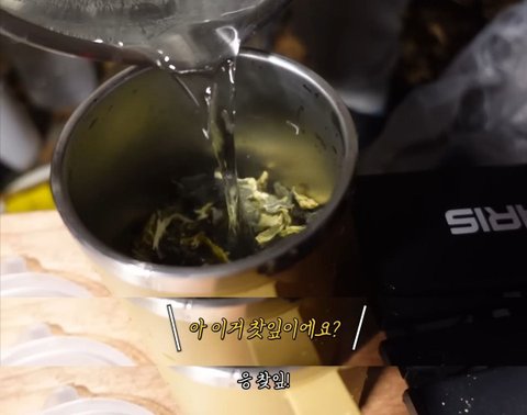 우려놓(은 줄 알)았던 찻잎을 냄비에 넣음